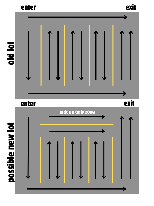 Congestion problems could be solved by repainting the parking lines while utilizing the same lot space. Reconfiguring the lot to separate parking and drop off would prevent waiting parents from interfering with students attempting to leave. Additionally, clearer markings would help prevent issues with zipper merging and confusion surrounding the flow of traffic. Improving the flow of traffic would also automatically ease issues for families attempting to use the accessible spots, but a repainting of the lines could ensure traffic wouldn’t interfere with the accessibility spots. A reconfiguration of the lot could also include changes in where buses from other schools drop off kids at IHS, alleviating traffic on Cayuga Street.